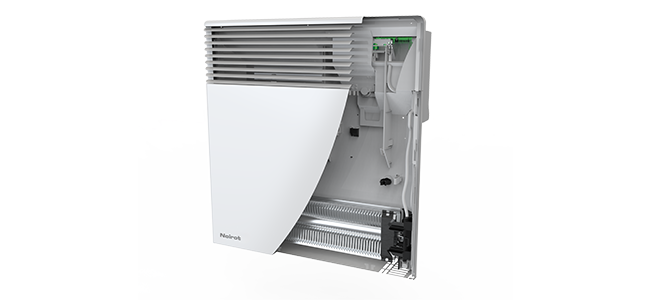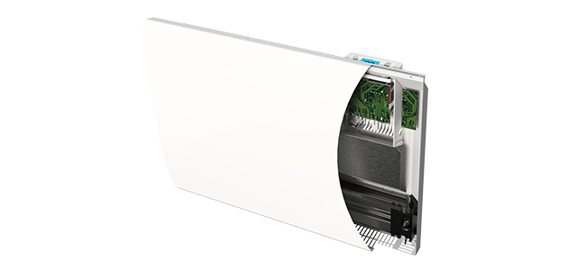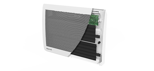 The exclusive single-unit aluminium heating element and the deflector heat up the front panel very quickly to provide a feeling of gentle, even heat throughout the room.