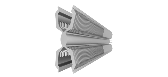 The geometry of the front face of the ribbed radiant transmitter reinforces emissions and limits the movement of air to the benefit of radiation. A specific surface treatment, different between the 2 sides is applied to direct and optimize heating emission forward. Its one-piece aluminium design makes it quiet.