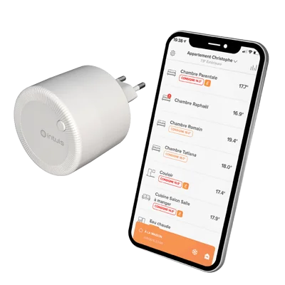 Easy to install, the intuis connect gateway plugs directly into a power outlet. Its discreet design reflects the intuis brand identity. It connects all products equipped with a nativ thermostat, offering centralized control via the intuis connect with Netatmo app.