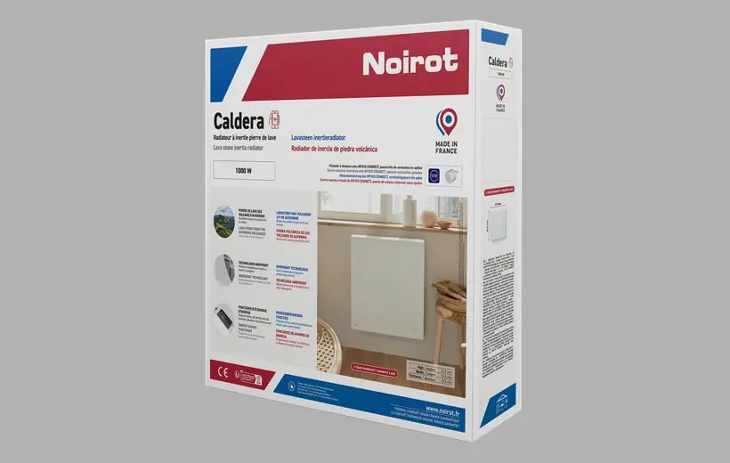The exclusive UNIQUE "INERFRONT" process, developed in our laboratories, offers a double monobloc aluminum heating element (patented) associated with lava blocks (from 2 to 4 depending on the power) of 1.8kg each directly attached to the facade of the radiator . This UNIQUE SYSTEM ensures both a rapid rise in temperature and exceptional heat distribution and conservation. The smooth and elegant surface of the CALDERA radiator diffuses gentle and even heat throughout the room. The new NOIROT thermostat connected to your needs