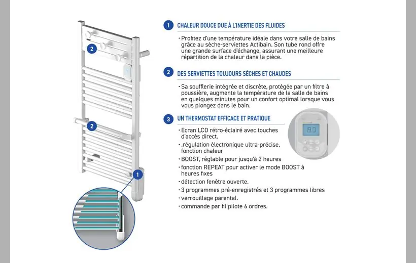 Enjoy the ideal temperature in your bathroom with the Actibain towel radiator, towels that are always warm and dry.